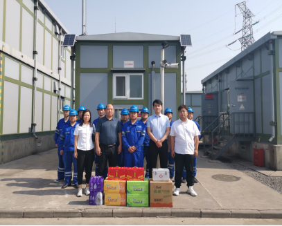 炎炎夏日,高溫酷暑。為確保高溫季節(jié)廣大一線職工的身體健康,6月16日上午,公司領(lǐng)導(dǎo)班子成員對公司鄧莊變電站和傅莊變電站職工進(jìn)行了親切的慰問,并為他們送上防暑降溫慰問品,讓堅(jiān)守在高溫一線的職工們實(shí)實(shí)在在感受到公司及工會(huì)的關(guān)愛。